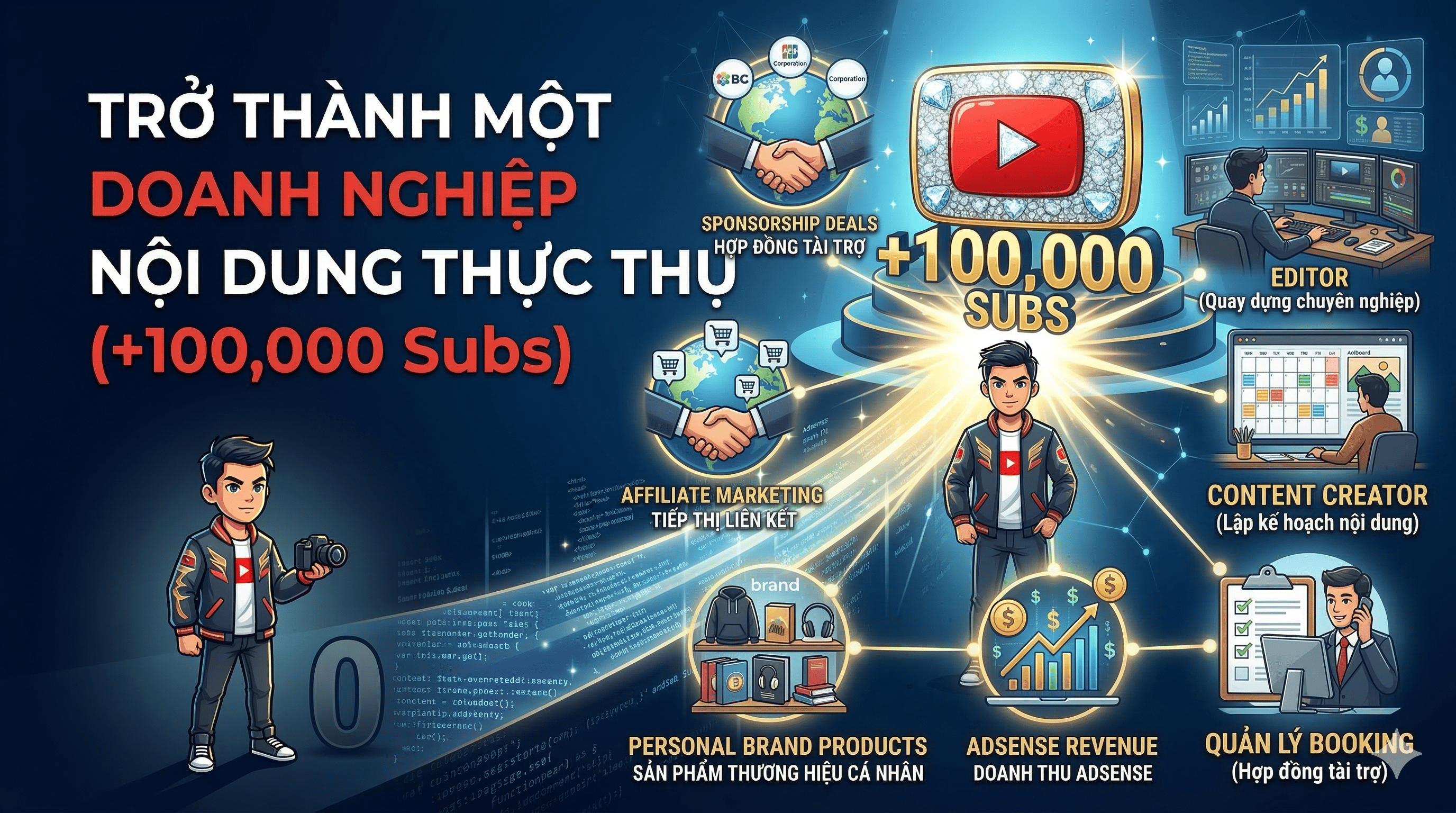 Giai đoạn 3: Trở thành một doanh nghiệp nội dung thực thụ (+100,000 Subs)